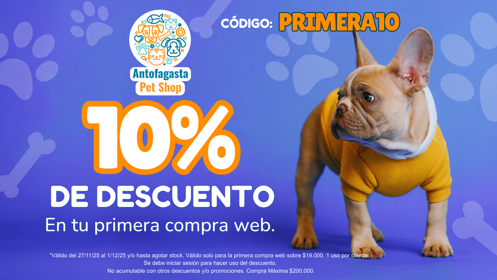 “Válido del 27/11/25 al 1/12/25 y/o hasta agotar stock web. Válido solo para la primera compra web. 1 uso por cliente. Se debe iniciar sesión para hacer uso del descuento. No acumulable con otros descuentos y/o promociones.”